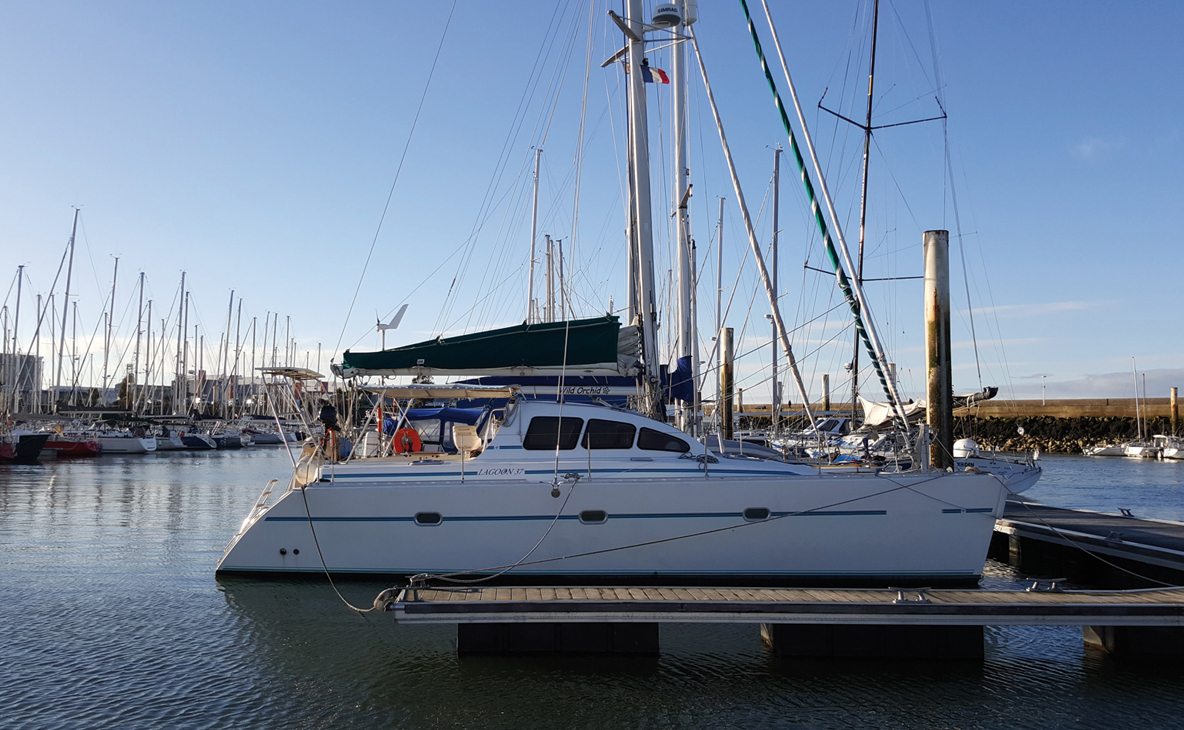 And of course, life’s unpredictability, job changes and professional projects mean that one day you wake up and it’s all very clear: I’m going to buy a boat. But that’s not everything. I will leave my lovely rented home with a sea view and I will live on board ! I wanted to throw off some of life’s baggage, was maybe afraid of putting down roots, wanting to move around a bit and just needing to change. In short it was all about finding some freedom again. The budget? Limited. Not just through neccessity, but also because I didn’t want to get too much in debt. I could have borrowed more, but what’s the point of owning a boat if you have to spend 360 days a year at the office to pay for it? I could have waited a year longer and waited for a house sale to go through which would have doubled my budget, but I didn’t want to keep putting things off until tomorrow. So I set my budget at €100,000. It’s perhaps a bit unwise to pay that for an old boat, but the monthly loan payback was the same as the monthly rental I paid on my house, and there just happened to be a few interesting boats on the market at around that price. Below that price, you really need to be a camping fan. The other criteria were to find a boat that was as long as possible, with the nacelle as high as possible, a solid build and inboard motors. Of course, outboards are more and more reliable, they are light and when lifted up help when under sail. But I’ve had too many experiences of problems getting them started. I want the reliability of diesel, just for my peace of mind, even though I know that older inboards can also have their problems. As for the rest, materials, builder, equipment… I had no preconceived ideas. I won’t be difficult, I’ll look at anything ! I even looked at trimarans at the start. You get more length for your money, and their elegance and seaworthiness were tempting. But I needed to live onboard, and the generation of boats which corresponded to my budget, didn’t offer enough space even if I liked minimalist living! There was also the issue of the amount of space needed in the port. It’s already an issue with a cat, so with a tri…