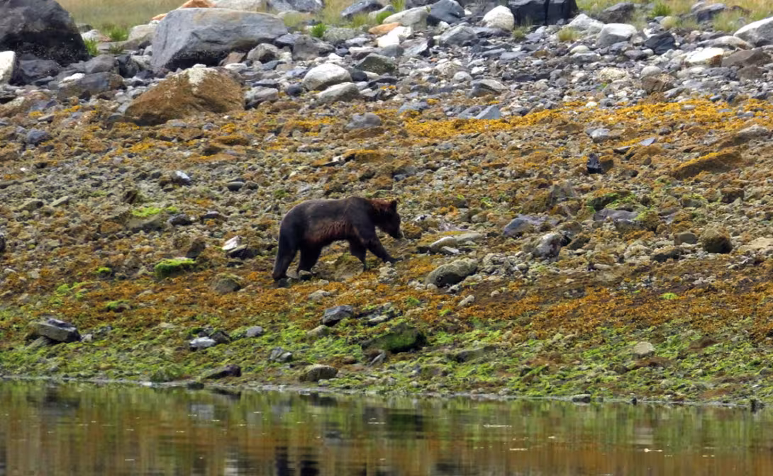 Here we are, then, in Glacier Bay, at the foot of the Fairweather chain (with its summit at 4,600m), which includes several hundred glaciers, a few of which drop into the sea. The bay was dug out during the 1700s, by the advance of the moraine, then their retreat over several tens of miles. At the beginning of the 20th century, the site became a National Park, and the number of boats allowed to visit is limited; no more than 25 per day, plus 2 liners. You therefore have to request a permit, two months before the desired date. We hadn’t been able to do this, as we were then between the Marquesas and Hawaii. There remained a second chance: telephone 48 hours before the desired date, and it worked! A bit of grey as we climbed and came down again, but between the two, a festival of images which will remain engraved in our memories! Glacier Bay has to be earned; you have to know how to be patient, so you don’t crack up when it rains all day, when the wind and the current slow your progress, when you never see the wildlife advertised at the entrance to the Park. Bears, mountain goats, wolves, seals…but where are they? Arriving at the glaciers, up high at 59°N and some 80 miles from the entrance to the Park is magic, especially when the sun makes an appearance and turns the ice blue. Kallima slipped in front of huge ice walls, in the middle of the growlers. From time to time, there was a dull rumbling, then an enormous ‘splash’, as part of the glacier fell into the water. At Marjorie Glacier we were alone, and could take as many pictures as we wanted. Then John Hopkins Glacier, surrounded by high mountains and at least another ten glaciers, but ones which don’t fall into the sea. Magic, I tell you! Finally, one morning, we caught sight of two bears one after the other, walking on the beach looking for food and turning over stones looking for shellfish. Then suddenly, we glimpsed some sea lions, a whale which blew, then two, three, up to eight in front of us; they jumped and beat their tails on the water. We forgot the rain!