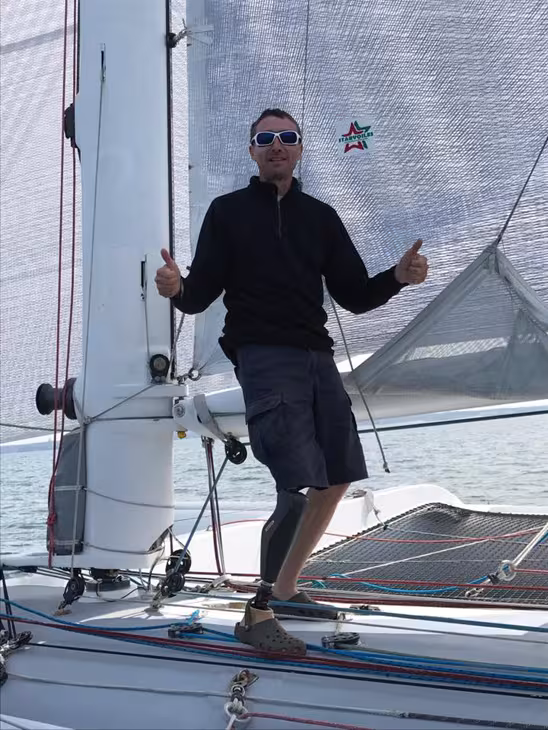 The proof, with Fabrice Payen, who is tackling the adventure of the Rhum. But although Fabrice is an experienced skipper and has been sailing as a professional skipper for around twenty years, he will be the first to tackle this race...having had one leg amputated following an accident. He will be setting off on this extraordinary adventure aboard a Multi50, Erik Nigon’s former boat.
