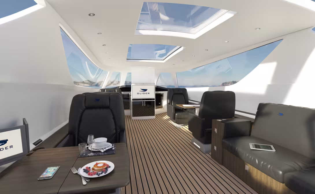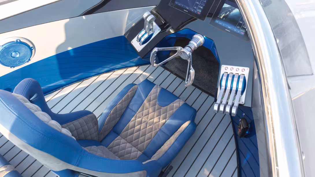 The very long (18 m) blade-shaped hulls house four 300 hp Yamaha engines, with propulsion by hydrojet allowing it to reach 56 knots and more than 80 once equipped with turbines. For efficient aerodynamics, all the technical equipment, such as the aerials and the radar, are built into the nacelle, which represents just a third of the total length, thus offering reassuring stability. The S18, designed for a driver and four passengers is currently serving as a test boat, and is carrying out numerous rotations, as it could be an alternative to the helicopter. The aim in the future is to offer a 24 m limousine with a closed cabin to transport a dozen people, with diesel engines this time. Then a line of yachts of from 35 to 80 meters could see the light of day soon, again with hydrojet propulsion. Its excellent passage through 1.5 m waves and the silence in the nacelle, well away from the engines, marks it out for the Luxury Yachting world, and a 35-metrer GT version with 4 passenger and crew cabins is being studied. A 270° panoramic owner's suite is possible, but the nacelle's interior can be completely customized, given the absence of structural bulkheads. Finally, although it can reach 43 knots, and 60 with turbines, it will have an operating radius of 2,500 miles at 30 knots!