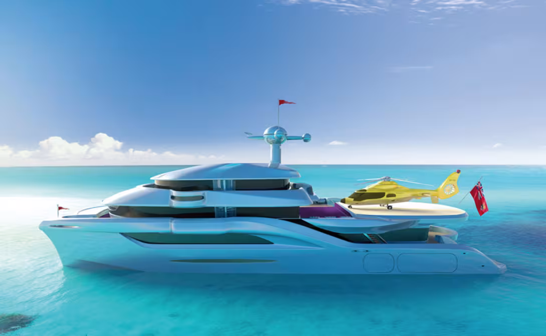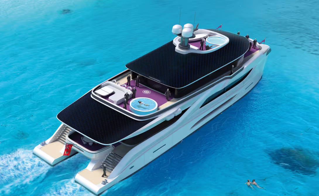 With this project, we are in the world of superyachts: 50m long with a beam of 16.5m, a 3.75m draft and engine power allowing it to reach a top speed of 22 knots, while having a range of 8,500 miles at 12 knots! But this enormous project is also completely up to date: it uses ecological solutions to optimize its operating costs. For example, it is equipped with 160m² of solar panels, and hybrid solutions with additional electric motors which are used to propel the boat when cruising slowly. The owner can also envisage fitting wind generators to increase ‘soft’ energy production still further.