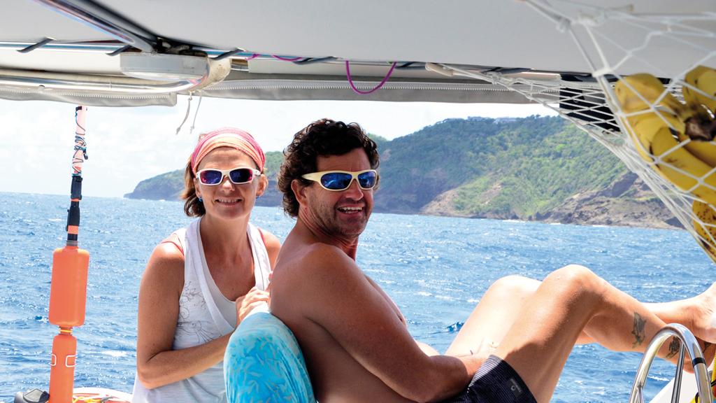 We left in October 2015 from Hyeres, in France, for a round the world voyage. Our route is classic: Hyeres, Balearics, Gibraltar, Canaries (Lanzarote) then the Atlantic crossing in 23 days and finally Martinique. It was my second transat, the first in a monohull, and this one in our Lagoon 380. There were two of us aboard (with our little dog, Heiwa). We no longer take on extra crew, as we are quite used to sailing as a couple: in 2008 we left in our Gib’Sea to sail round the Mediterranean for 9 months, the warm-up before the big departure!
