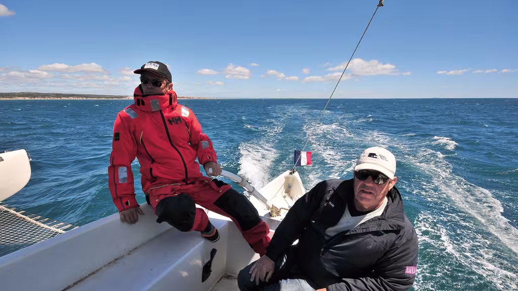 Look at this man’s smile – he’s obviously happy. He’s lucky enough to be sailing with our in-house tester Philippe Echelle aboard a Newick, at 15 knots. Jean-Yves Hasselin has however already sailed a lot – he’s a veteran of the Vendée Globe amongst others - but here he’s clearly in raptures.