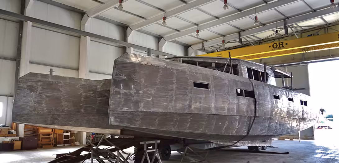 The n ° 1 in the series, built in sealium is currently being finished and offers 4 double cabins and two cabins for the crew. The concept is to offer the boat in timeshare over 8 years with a sailing program a little off the beaten track.