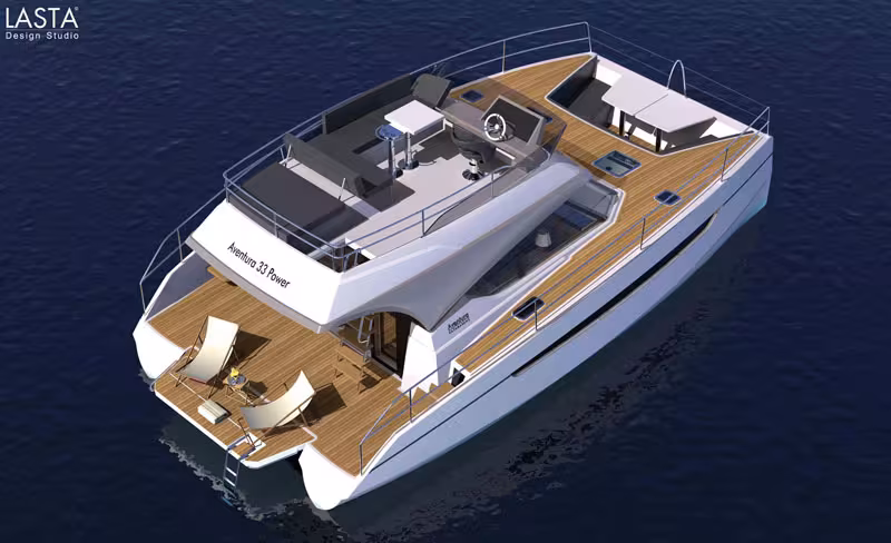 After a whole range of sailing catamarans, Aventura is offering a new motor catamaran, the Aventura 10 Power, designed by Lasta Design Studio.