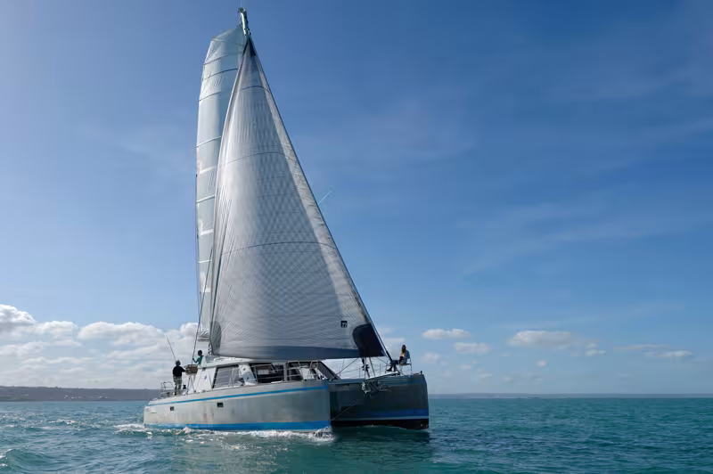 The SC 48 catamaran has benefitted from all the builder’s expertise, as well as that of the Grand Large Yachting group (Outremer, Allures and AluMarine) to which it belongs. This ocean cruising catamaran, built in aluminum, offers notably a forward cockpit, gates in the bulwarks to make access aboard easier, and lots of stowage areas, as all long-term cruising boats should have.