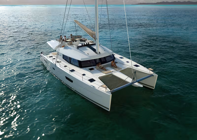 This top of the range catamaran goes even further with the concept which has proved itself over the past few years for the catamaran's builder, and will offer a 25m² cockpit, a flybridge accessible from both sides, and accommodating sunbathing areas and the steering position, a convertible foredeck and a very light, absolutely huge interior... A superb catamaran, offered in several accommodation versions, with up to 6 cabins.