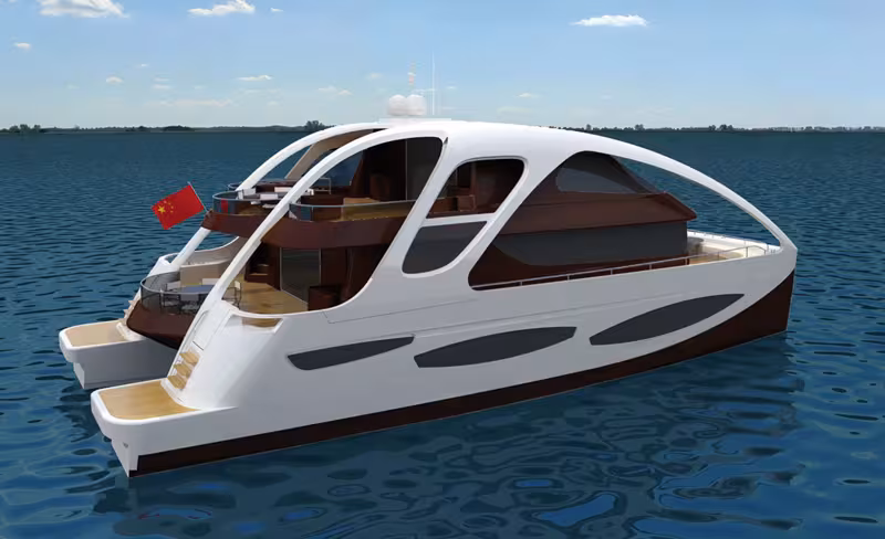 Here is a unique, original catamaran, designed and built in China.