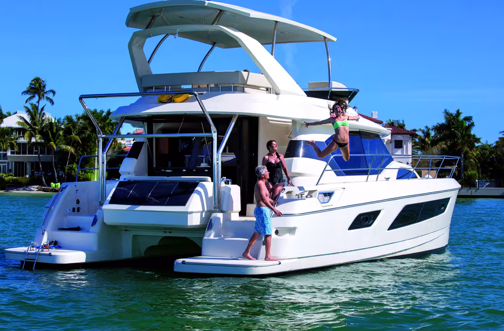 With the Aquila 48, the builder is offering a top of the range boat for a clientele looking for a fast boat, but one which can take them far if necessary. Available in three or four cabin versions, the 48 also suits a charter program, and it can be notably found at MarineMax Vacations in the BVI. A boat designed by sailors with a lot of experience in the nautical industry, who have used their expertise to create this very beautiful boat.Visit the Aquila 44 and Aquila 48 at the Cruiserport on Collins Avenue: