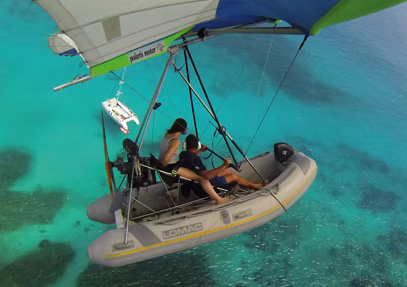 We all know that aboard a catamaran, the dinghy is really essential. But during a distant cruise, one of the members of the editorial team came across this...flying dinghy!