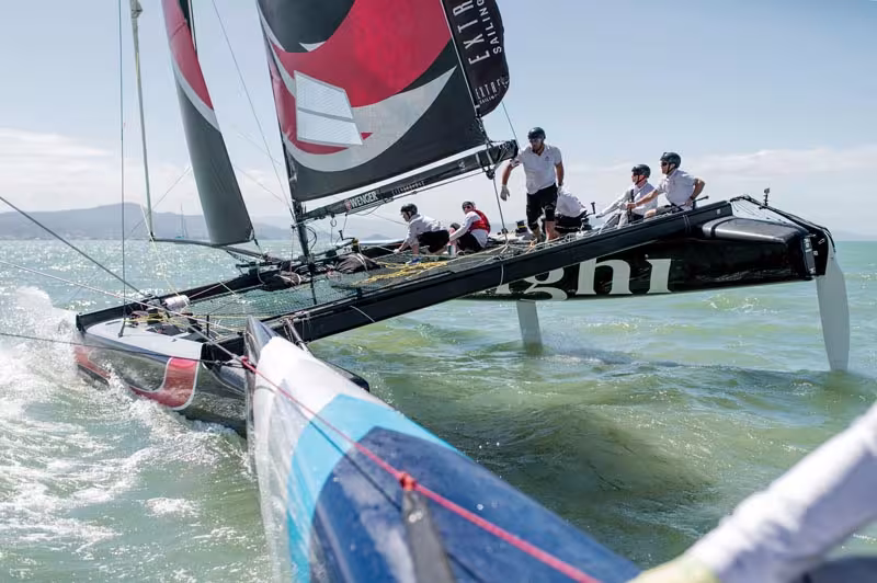In 2014, we will once again find all the international crews, from the first leg onwards. This will be held in Singapore in February, before the start of a trip almost round the world, between Europe, Asia and the American continent. The catamarans used are genuine one-design boats, designed by Yves Loday, and are particularly athletic and...spectacular, as is the race format – very short and intense.