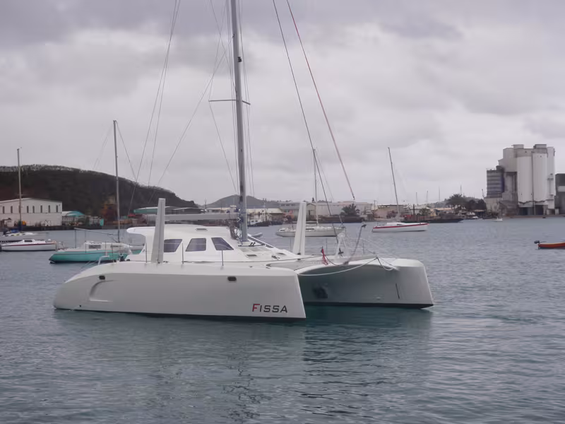 Built locally by Marine Performance, ‘Fissa’ is a fast, light catamaran (4.6 tonne displacement, with 94m² of sail) which offers excellent comfort aboard.