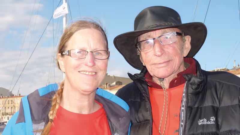 At the old port in Sète, the wind was in Tramontane mode. Strong. The ‘Golden Oldies’, the former glories of ocean racing on two or three hulls, lovingly restored and maintained, wisely stayed tied up to the quay. Just like the tuna fishing boats, a few metres from the fish market. James Wharram had spent his afternoon showing people his superb personal Pahi 63: Spirit of Gaia. He arrived on the arm of Hanneke Boon, a member of “Wharram design” for forty years. It could only be the wind which curved his back a little, and the stick was without a doubt just to counter the most violent gusts, because otherwise, what a lively intellect, what a youthful outlook, what eloquence.