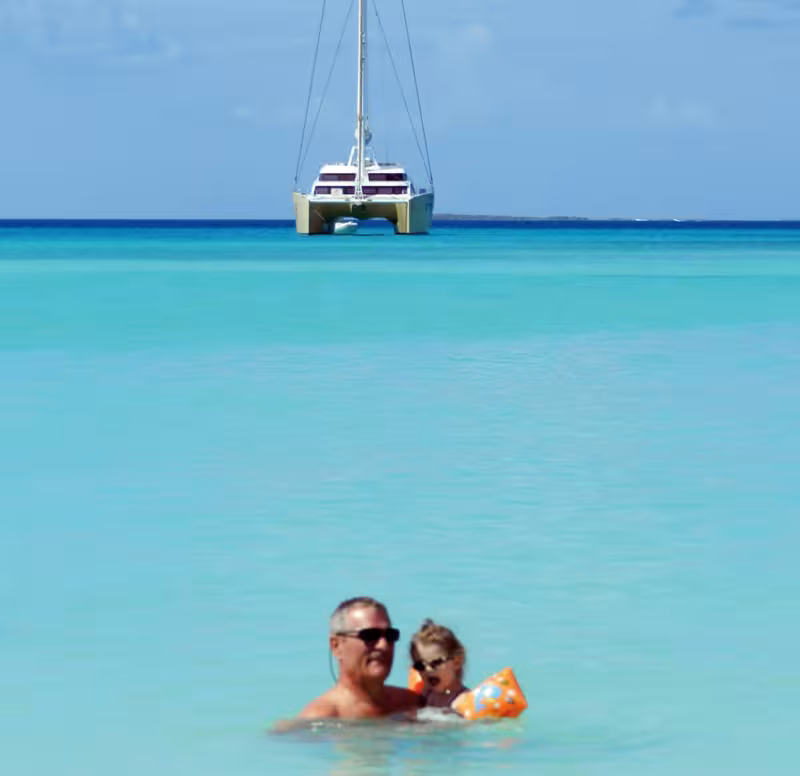 A very up-market catamaran, with even a jacuzzi in the (sublime) owner’s suite, and a giant flybridge of over 35 m2. In short, a luxurious boat, but this does not prevent it from sailing. In less than a year, the catamaran has actually crossed the Atlantic for the first time to discover the Caribbean with its owners, before returning to spend the summer season in the Mediterranean. For this first year, Paula and René, the owners, fell for Los Roques, a place where you find “desert islands and crystal-clear blue water. We spent some unforgettable moments as a family there...” Happiness is as simple as a voyage in a catamaran....
