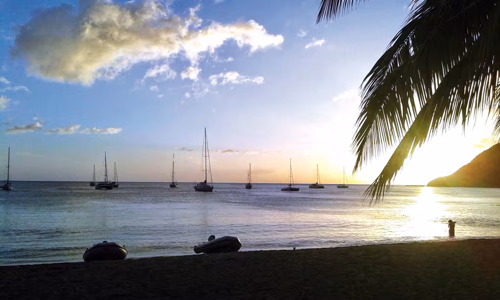 "The anchorage in Prince Rupert Bay is huge and the sea bed holds us in position well. Which is just as well as we'd just endured a whole day and night being buffeted by 40 knot winds. And this was after a very testing day's sailing from Deshaies, Guadeloupe. Getting our clearance was a formality with no difficulties. They do the check-in and check-out at the same time, so there's no need to go back, which is great. A few boatboys potter around the bay proposing their services: laundry, water taxi, various tours. They are much less annoying than in the southern islands as there are no trinkets for sale, or fruit and vegetables to barter over. Just a range of services. We chose Albert. His little set up for which he had a certified Tour Guide badge, and his laid back attitude reassured us. We started by visiting the famous Indian River (where Pirates of the Caribbean 2 was filmed) in a small boat. We were really impressed by the knowledge and enthusiasm of our guide. Every plant and every tree was identified and explained for us. The views are magical.