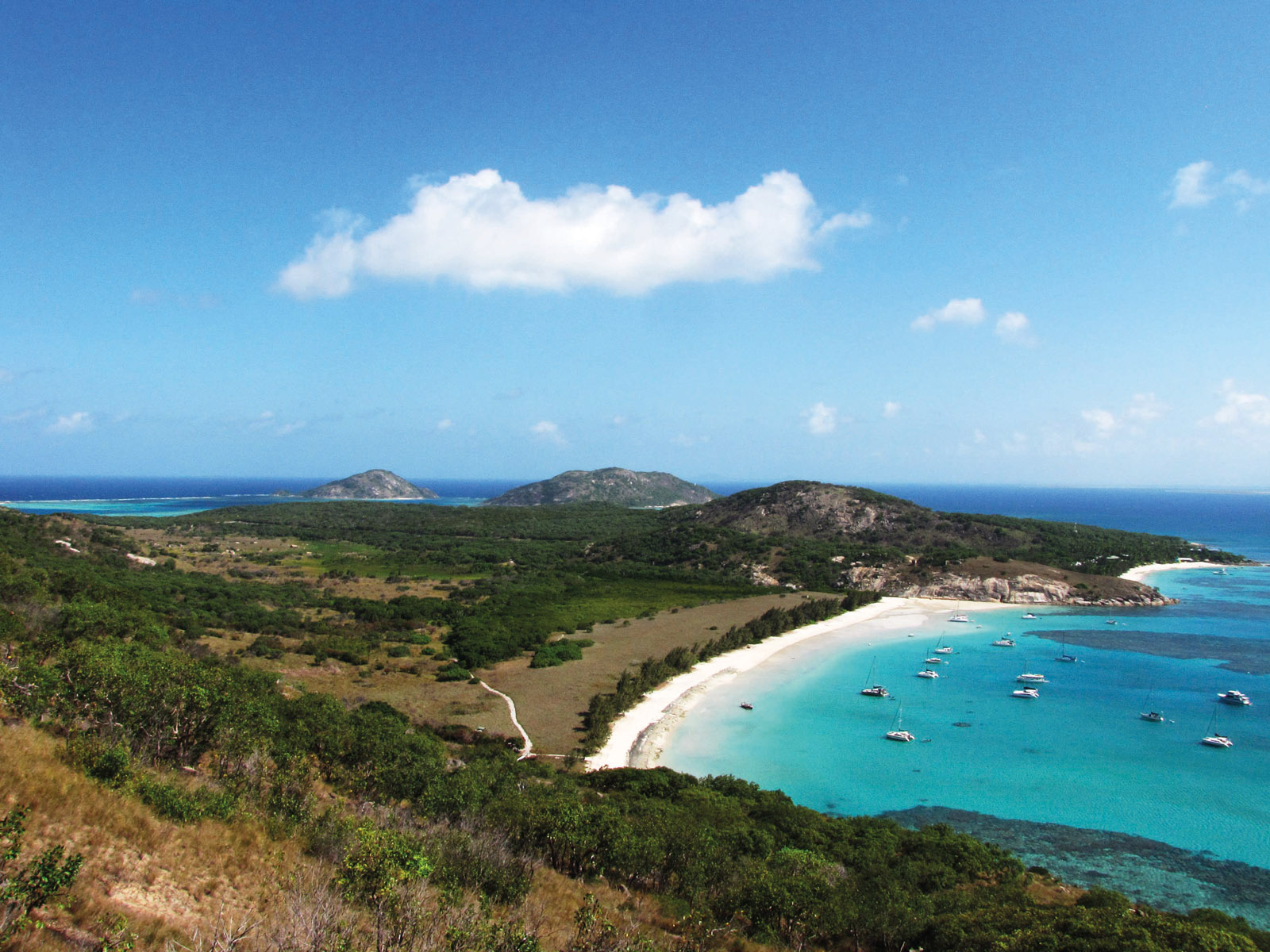 At 170 nautical miles north of Cairns, Lizard Island has a world class resort and a popular anchorage with supply barge from the mainland.