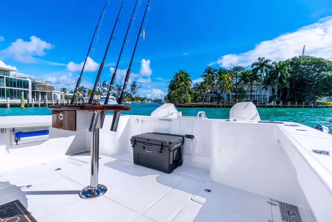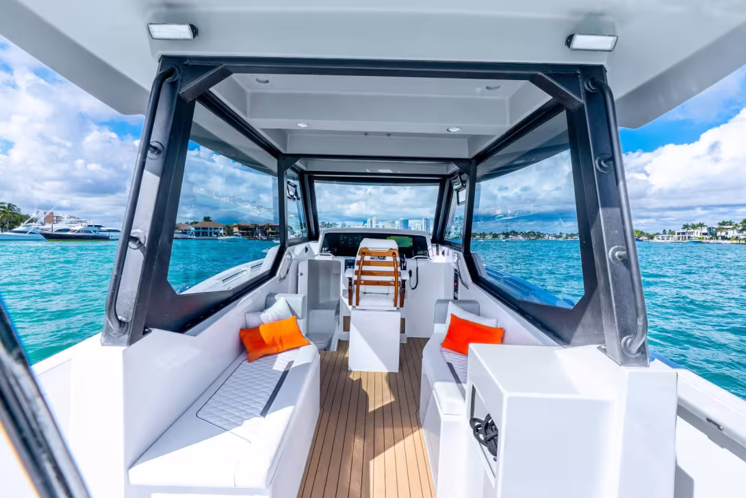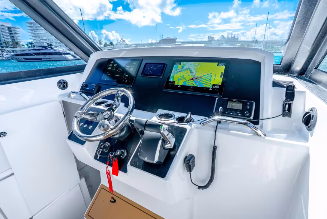 Notre grand reporter Brieuc Maisonneuve a pu tester cette nouveauté 2026 tout juste nominée au MOTY 2026 à Fort Lauderdale : « dans des conditions assez musclées, avec 20 nœuds de vent et une mer formée sous l’action du Gulf Stream, j’ai eu la chance d’essayer le surpuissant HammerCat 35HH avec Peter Wiersema, l’un des deux fondateurs du chantier HammerYachts. Il s’agit assurément d’un powercat sans concession, ne pesant que 4 tonnes grâce à sa fabrication soignée. Grâce à ses deux moteurs hors-bord Mercury V10 de 400 ch, le 35HH est aussi un monstre de puissance doté d’une carène assurant un excellent passage à la mer. Un powercat idéal pour la pêche sportive, mais pas seulement ! »