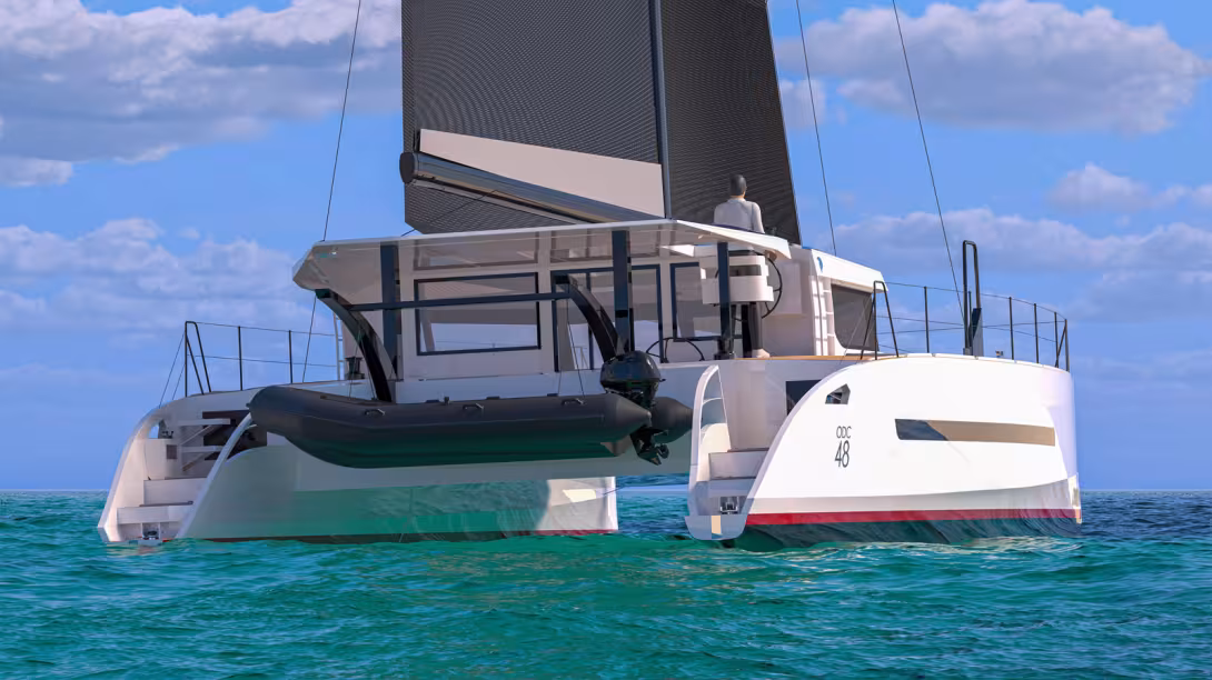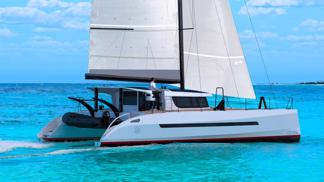 The smallest model is the Odisea 48 - or ODC 48 - which stands out for its relatively low freeboard and, above all, its daggerboards, suggesting that the designers’ aim is to reconcile a material usually reserved for multihulls designed for extreme long-distance cruising (ice, navigating little-frequented rivers) with a genuine quest for performance. An effective anti-leeway design combined with a large sail area (no flybridge) and very light displacement are all guarantees of high average speeds. Note the rounded design and, above all, the surprisingly narrow sugarscoops, reminiscent of the racing multihulls of the 1990s – to ensure low drag in light airs. Two further models are coming soon: the Odisea 55 and Odisea 64.