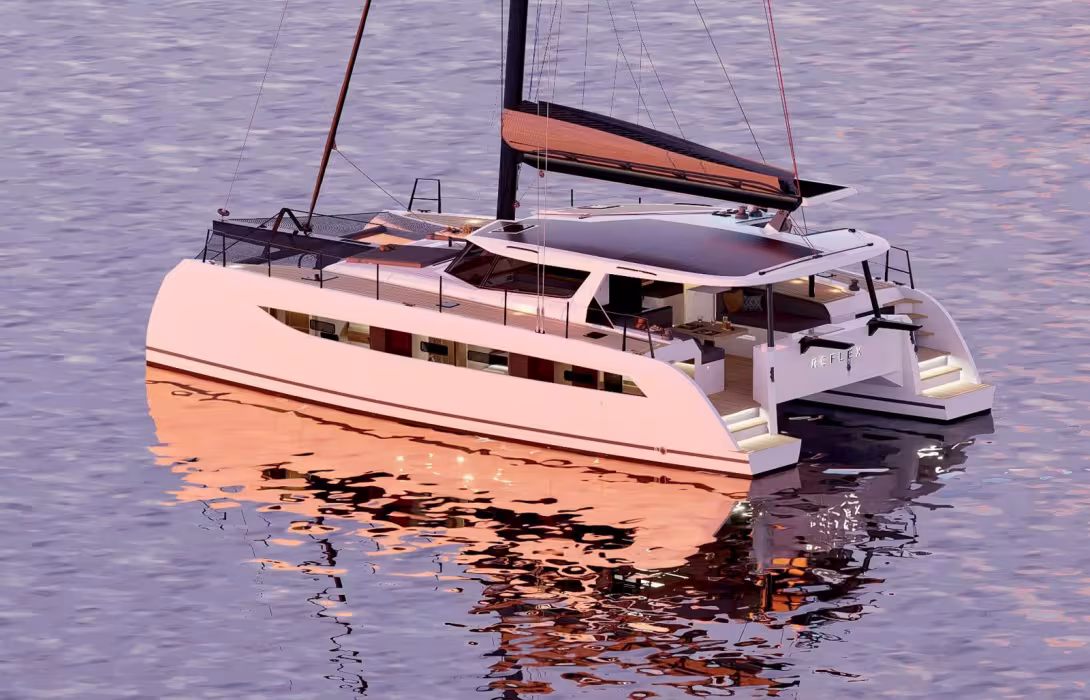 Jonathan shares with us the first images and specifications of his next blue water multihull. Designed by Du Toit Yacht Design, Reflex offers a very balanced compromise between speed and comfort, as evidenced by its sail area/weight ratio of 9.70 m²/t. The speed polars promise 7 to 10 knots upwind and 9 to 12 knots downwind with 12 to 20 knots of wind, good light-airs performance with 5.5 to 7.5 knots in 6 to 10 knots of wind. The expected maximum speeds are around 15 to 18 knots downwind in the right conditions. “Reflex prioritizes a safe and versatile approach, a catamaran capable of covering miles quickly, while remaining easy to handle, comfortable, and suited to long-distance cruising,” explains Jonathan. “This isn't a boat looking for absolute performance, but rather the right performance, the kind that really matters when crossing oceans - that's the philosophy behind this multihull!”