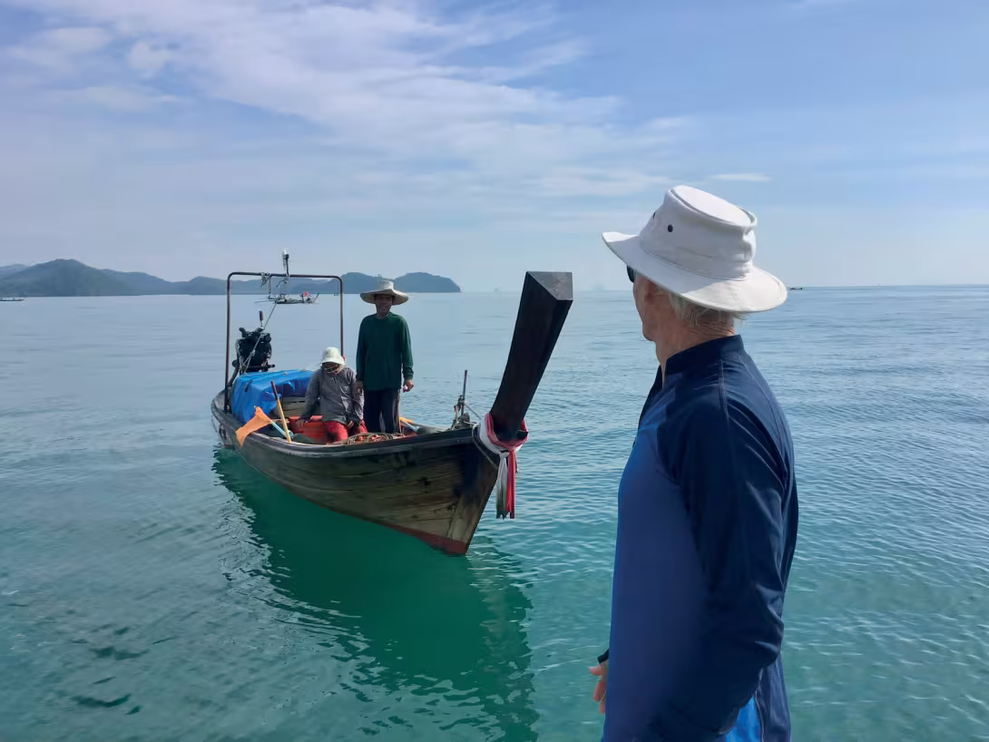 On the first evening, we would head to Phang Nga Bay, which is somewhat like the twin sister of Ha Long Bay in Vietnam. We could stop there for the night. Before that, we would visit the famous hongs, caves and natural lakes inside the islets. Fishermen come up to you to offer you large shrimp. Further down, we arrive at the famous island of Koh Phi Phi, then Maya Bay beach and finally Koh Lanta with its long beaches with wooden restaurants and bars. What we quickly noticed is that there are very few pleasure boats, (even in the most touristy areas), that most anchorages are free and that the environment is as calm as it is safe.