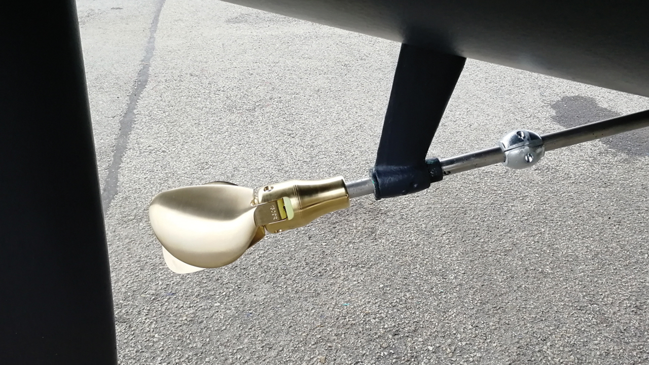 Changer les hélices de son multicoque n’est pas aussi compliqué que cela en a l’air – il faut juste un peu de préparation, en particulier pour la sortie d’eau. Il convient tout de même, avant de se lancer, de choisir la bonne hélice. Les modèles les plus basiques sont les becs de canard. On les utilise en compétition. Elles sont peu onéreuses (moins de 1 000 euros pièce suivant la taille du bateau) et offrent une traînée quasi nulle grâce à leurs pales articulées, mais affichent de piètres performances au moteur, particulièrement en marche arrière. Les modèles avec les pales qui se mettent en drapeau sont bien plus efficaces, tout particulièrement celles dont le pas est réglable. Mais elles coûtent deux à trois fois plus cher.