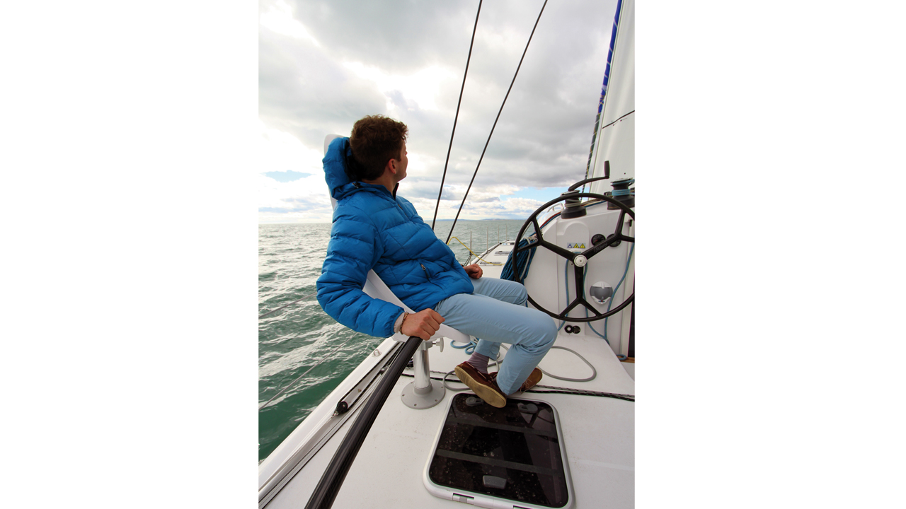 Pas de honte à s’appuyer au moteur en croisière ! Quand le vent est mal établi et la mer formée, remonter au vent est facilité par la mise en route du moteur sous le vent à bas régime. Associé à la grand-voile bordée plat, on obtient un bon équilibre de barre, une vitesse correcte, une consommation minimum et… la recharge des batteries !