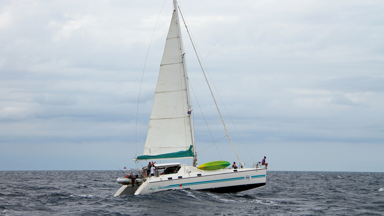 "Les multicoques, et les catas surtout, ce n’est pas fait pour le près." Ça, c’est le discours que les habitués du monocoque rabâchent à ceux qui ont choisi de naviguer sur deux ou trois coques. Dans le fond, ils n’ont pas tout à fait tort ; un catamaran est bien plus rapide au portant qu’au près. L’écart de vitesse est même le plus souvent du simple au double. Et les partisans du multicoque, sans doute plus épicuriens dans leur approche de la navigation, privilégient les parcours sans bords à tirer… Et quand ça leur tombe dessus, la route pêche au moteur, mer de face, est bien tentante à défaut d’être confortable. Pour autant, les multicoques ne sont pas incapables de remonter au près, loin s’en faut. Et ils ont l’avantage de naviguer à plat, eux – on ne l’écrira jamais assez ! Il est tout à fait envisageable de louvoyer contre le vent, même à bord d’un cata de série typé croisière. Certes, la route et le temps sont plus longs (deux à trois fois) que l’option tout moteur face au vent. Mais, si vous n’êtes pas pressés, voici les bonnes recettes pour tirer les bons bords.