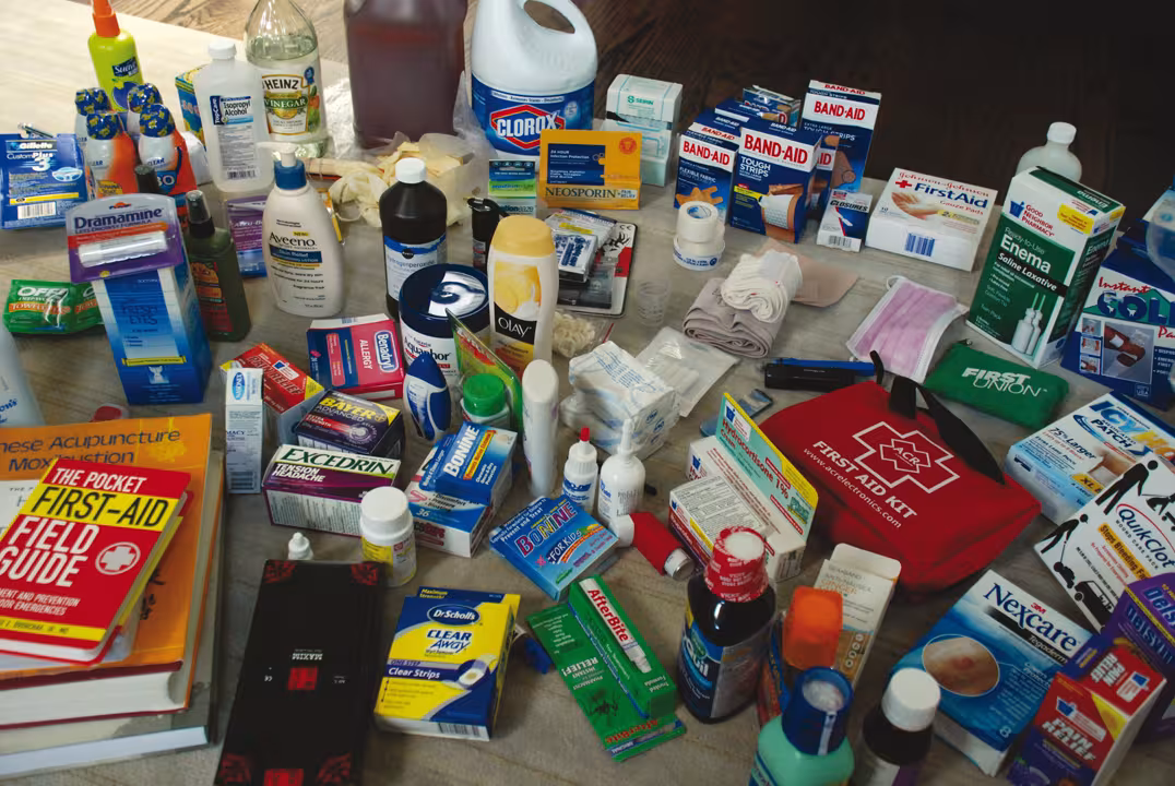 Pour les besoins de tous les jours, comprenant à la fois le nécessaire d’urgence pour petit bobos – pansement, compresses, désinfectant, pommade anti-brûlure ou post-traumatique – et quelques médicaments courants comme les antalgiques, pansements gastriques et anti-inflammatoires , mieux vaudra utiliser une pharmacie de type équipet, encore plus facile d’accès, et dans laquelle vous pourrez aussi stocker votre traitement quotidien personnel. Enfin, une dernière trousse, stockée dans le matériel d’évacuation, sera bien utile s’il faut quitter le bord en urgence. La trousse de la plupart des radeaux de survie est réduite à quelques sparadraps et pilules contre le mal de mer... Néanmoins, si le volume total de la pharmacie de bord du bateau n’est pas trop conséquent et qu’elle est facilement accessible, cette dernière pourrait être entièrement embarquée.