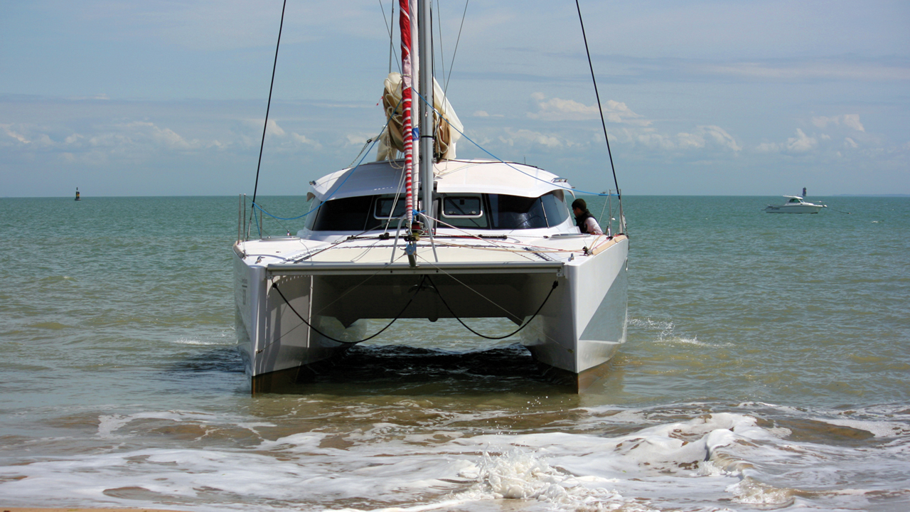 Le faible tirant d'eau d’un multicoque incite à s’approcher au plus près de la plage, voire à carrément beacher. Mais gare au ressac et aux mauvaises surprises au remontant, sur les plans d’eau à marée. Un exercice à limiter aux mouillages les plus calmes.