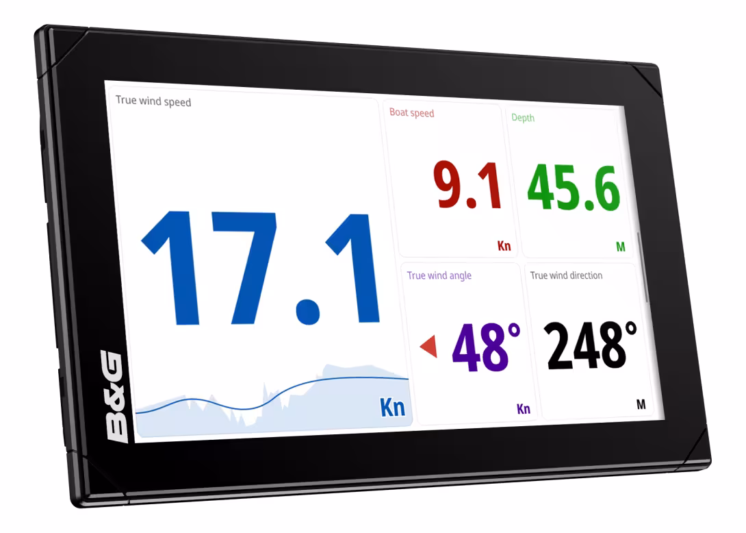 En offrant plusieurs tailles pour la représentation des données, ainsi que des palettes et une fonction de rétro-éclairage réglables, Nemesis affiche les données de manière optimale dans toutes les conditions. L'écran personnalisable (9 ou 12 pouces) tout-en-un peut être monté en mode portrait ou paysage. Son éditeur convivial de type glisser-déposer offre un large choix de paramètres : indicateurs graphiques, SailSteer™, niveaux des réservoirs, données numériques, vues de caméra IP, histogrammes et images. Les skippers ont donc la liberté de sélectionner les données et les palettes, ainsi que de définir la taille et la position qu'ils souhaitent. Ils peuvent également faire leur choix parmi une pré-sélection de tableaux de bord et de modèles B&G intégrés. D'autres modes contextuels automatiques permettent aux utilisateurs de choisir les données de navigation qu'ils souhaitent afficher, en fonction de leur mode de navigation et allure : au près, vent de travers, au portant ou phase de départ de course. L'afficheur Nemesis peut être contrôlé via l'écran tactile ou à partir d'une Apple Watch®.