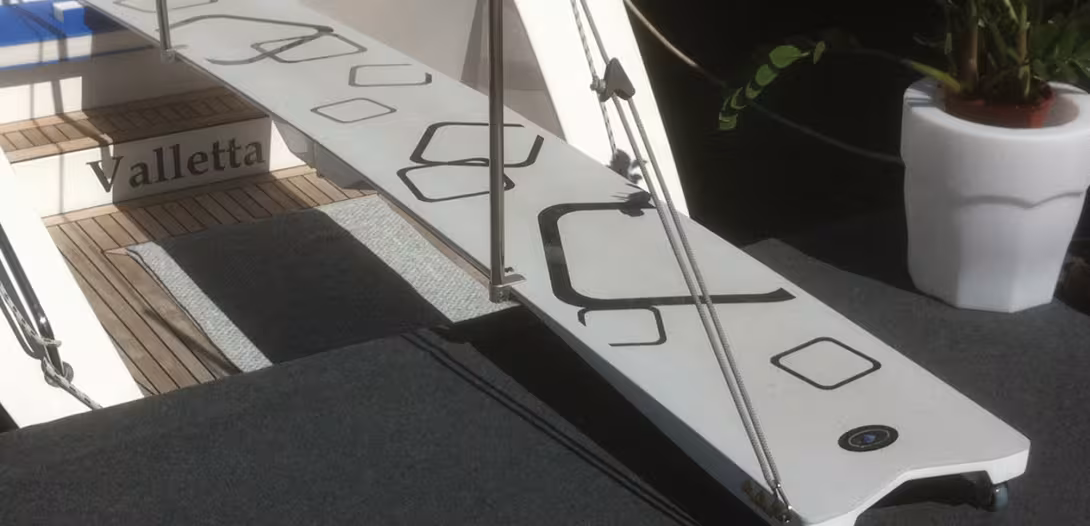 <p>On néglige trop souvent la passerelle, qui doit pourtant être légère, facile à mettre en place, solide et ergonomique. C'est le cas de ce modèle pliant de chez Nautex, construit en composite, et très facile à ranger comme à utiliser. Elle est de plus flottante, et entièrement personnalisable.</p>