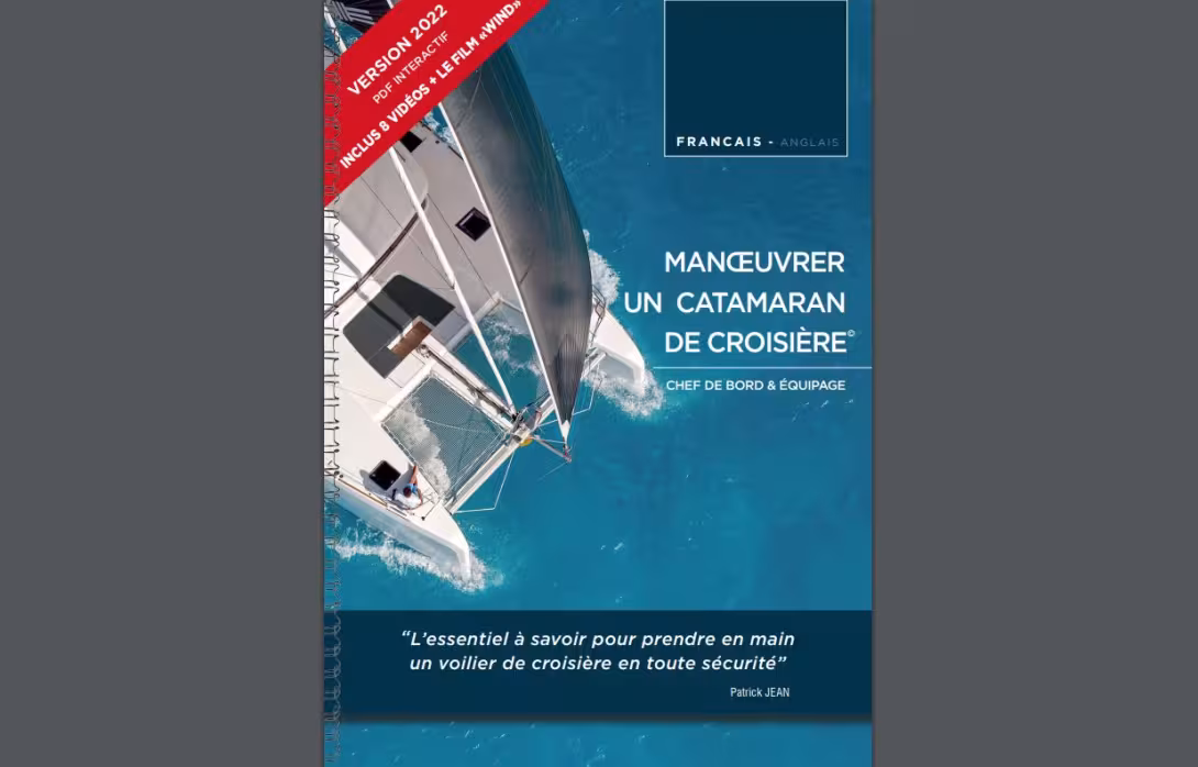 Cet ouvrage, au format pdf, est interactif. Il est publié en anglais et en français. Manœuvrer un catamaran de croisière inclut en plus de ses 70 pages 8 vidéos particulièrement bien adaptées à l’apprentissage. Ces séquences sont tirées du film Wind, auquel nous avions consacré un article dans MM197. En bonus, vous pourrez (re)découvrir le film complet, réalisé en Corse à bord d’un Lagoon 46. Disponible sur notre boutique en ligne sur www.multicoques-mag.com. Prix promotionnel de 14,90 € au lieu de 20 € jusqu’au 1er octobre.