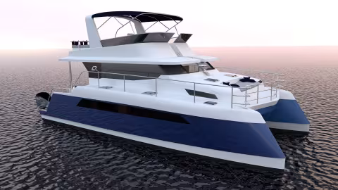 Like its big siblings, the 44 and 58, the new Longreach 40 guarantees a great cruising range (1,200 nautical miles at 12 knots) thanks to its hull form that has been optimized to reduce drag and its inverted bows (giving greater waterline length).