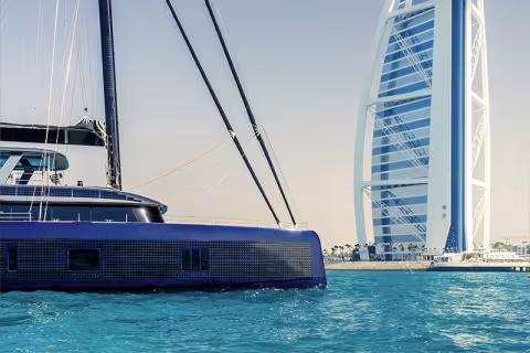 While the Eco range from the leading shipyard in the multiyacht sector is very well established with the 80 (both sail and power), with half of all orders opting for the hybrid propulsion system, the same couldn’t really be said for the famous 100... until the arrival of Double Happiness, the first model to adopt electric propulsion.