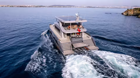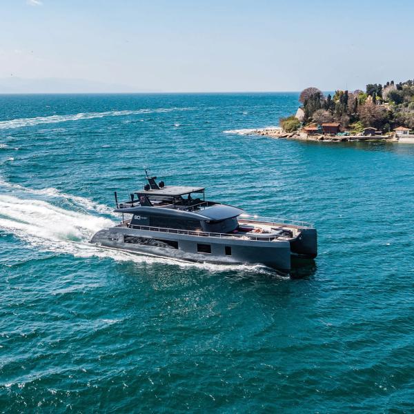 As we announced back in July, the largest VisionF catamaran ever built has been launched. Measuring 101 feet (30.7 meters) in length, this aluminum multiyacht is topped with a GRP coachroof and powered by four Volvo Penta IPS 1350 motors delivering a total of 4,000 HP.