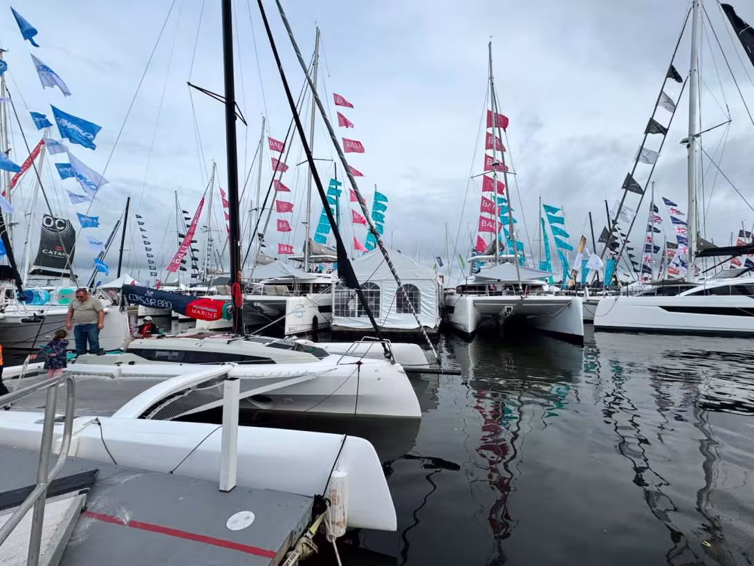 Du côté des Premières américaines, on pouvait compter – du plus petit au plus grand - sur le Dragonfly 36, le Lagoon 38, l’Excess 13, le FP41, le FP44, le Bali 5.2, le Leopard 52 et enfin le Balance 580. Cette année encore, la météo a joué quelques mauvais tours aux exposants ; les ouragans qui ont sévi plus au sud ont contrarié et retardé nombre de convoyages et le dimanche, jour de clôture du salon, s’est révélé bien humide… mais il en fallait plus pour décourager les passionnés de multicoques, qui comme nous ont fait le déplacement !