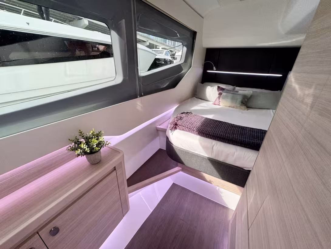 A noter : le 42 Coupe est équipé d’un système de foils qui permet de réduire la consommation tout en augmentant le confort de navigation.