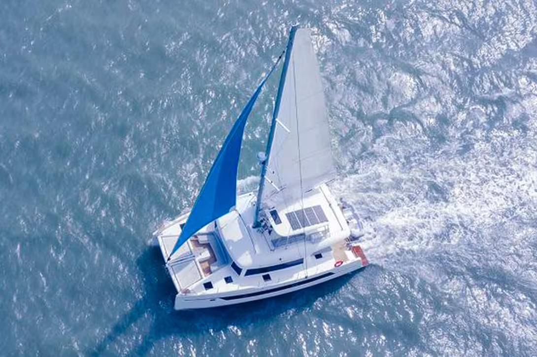 Qu’à cela tienne, cela ne nous a pas empêché de découvrir cet ambitieux multicoque né Seaview 56 en 2021 puis rallongé pour devenir Seaview 59. En observant le gréement, on relève la surface modeste de ce plan de voilure eu égard au déplacement : le ratio voilure/poids s’établit en effet à 5,14 m2/t, là où on considère qu’un catamaran est performant quand cette valeur est supérieure à 10. L’objectif est donc de disposer d’une plate-forme de vie tout équipée dont les standards de finition rejoignent ceux de l’habitat de luxe terrestre. Pas moins de 5 plans d’aménagement sont proposés, intégrant 4 à 6 cabines.
